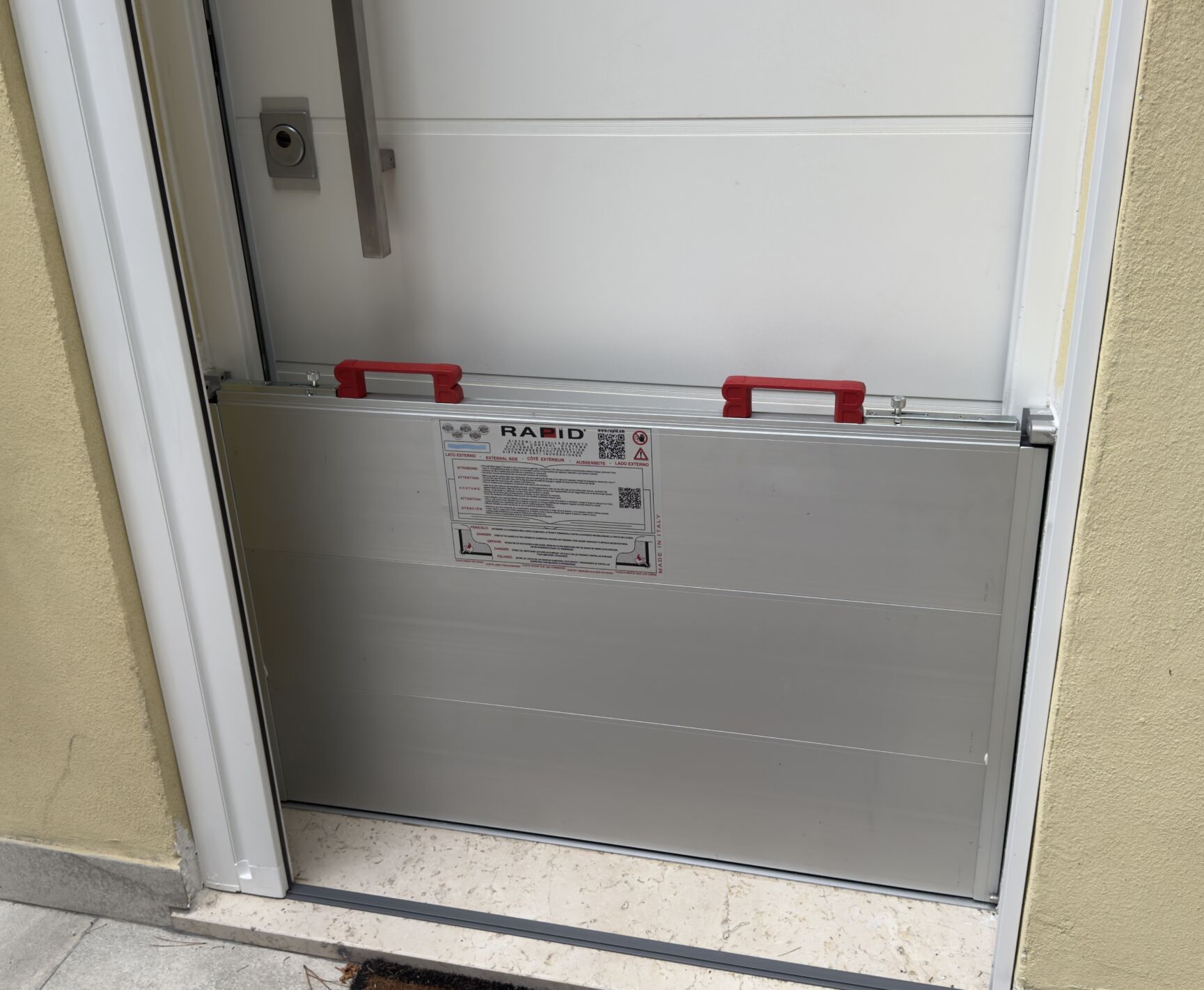 Il cancello antiallagamento RAPID GATE unisce protezione idraulica e praticità di apertura. Progettato con telaio rinforzato e soglia a norma per l’accessibilità, è indicato per ingressi dove serve un passaggio frequente senza rimuovere la barriera. Può integrare serratura o lucchetto e garantisce un utilizzo agevole anche in spazi pubblici.