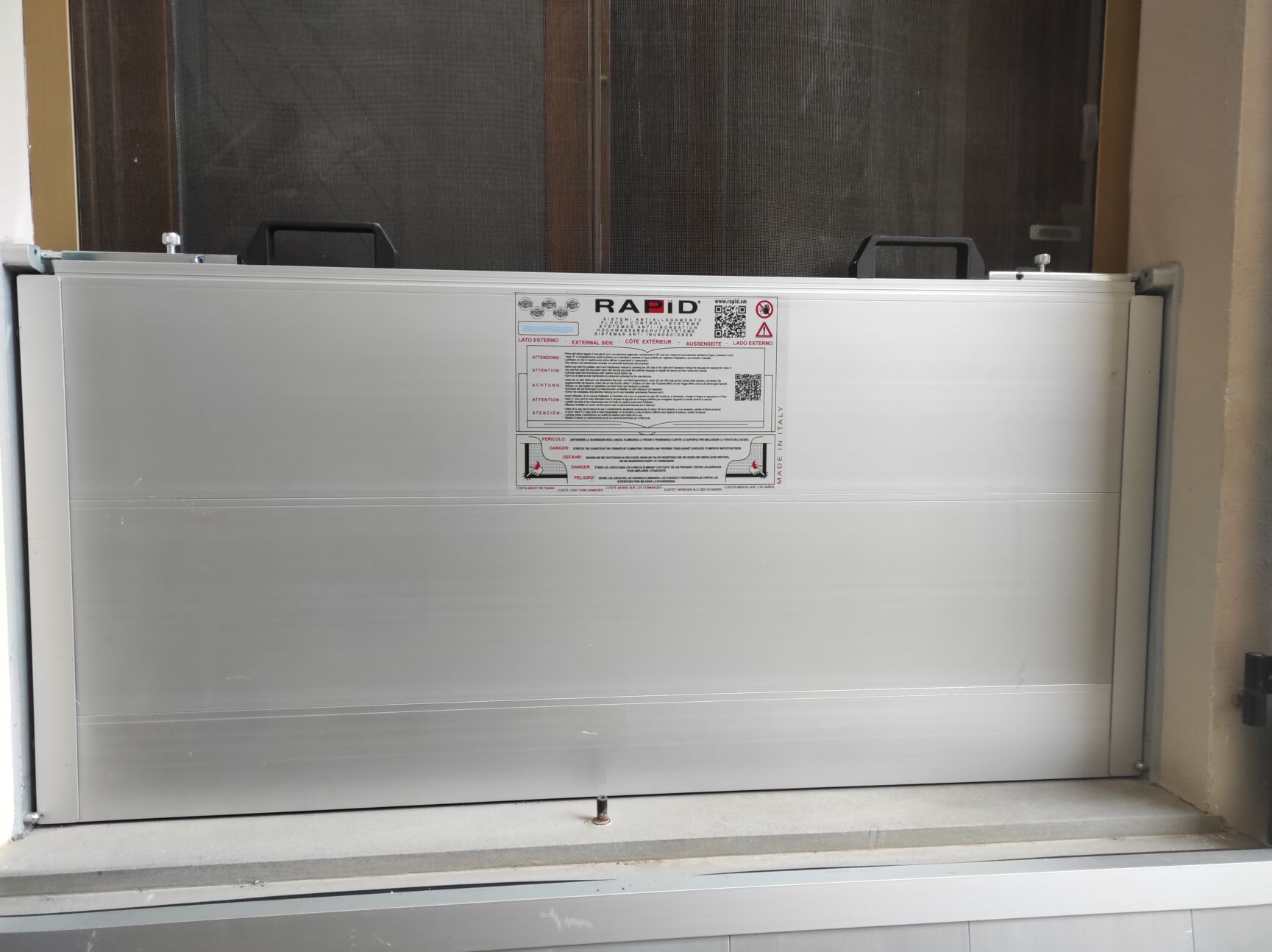RAPID modello MODERNA: è una paratia a pressione senza scatto, progettata per un’installazione rapida senza lavori di muratura o profili permanenti. In alluminio anodizzato, si adatta su misura al vano e può proteggere porte, garage e accessi vari. La chiusura fluida e le guarnizioni di compressione assicurano protezione e facilità d’uso (adatta a TUTTI, senza alcuno sforzo richiesto per il posizionamento).
